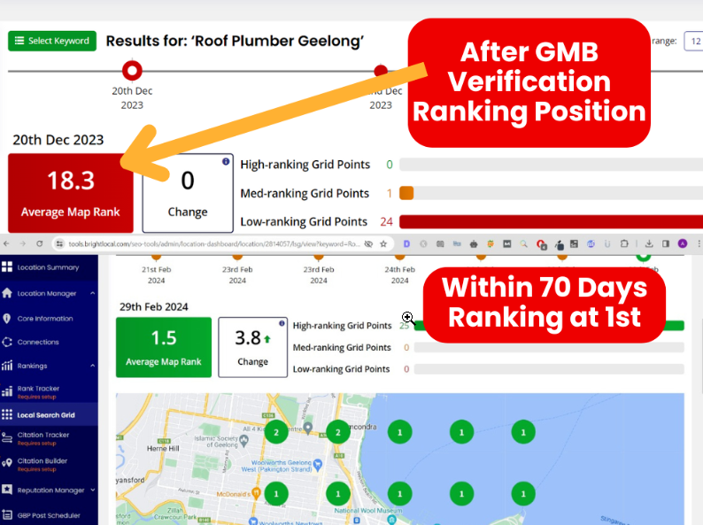 We helped Geelong Roofing Pros dominate local search in just 90 days, driving a 200% increase in organic traffic, multiple first-page rankings, and a significant growth in Google My Business visibility. GMB-generated calls doubled from 20 to over 40 within one month, proving rapid improvement in local visibility and lead generation.